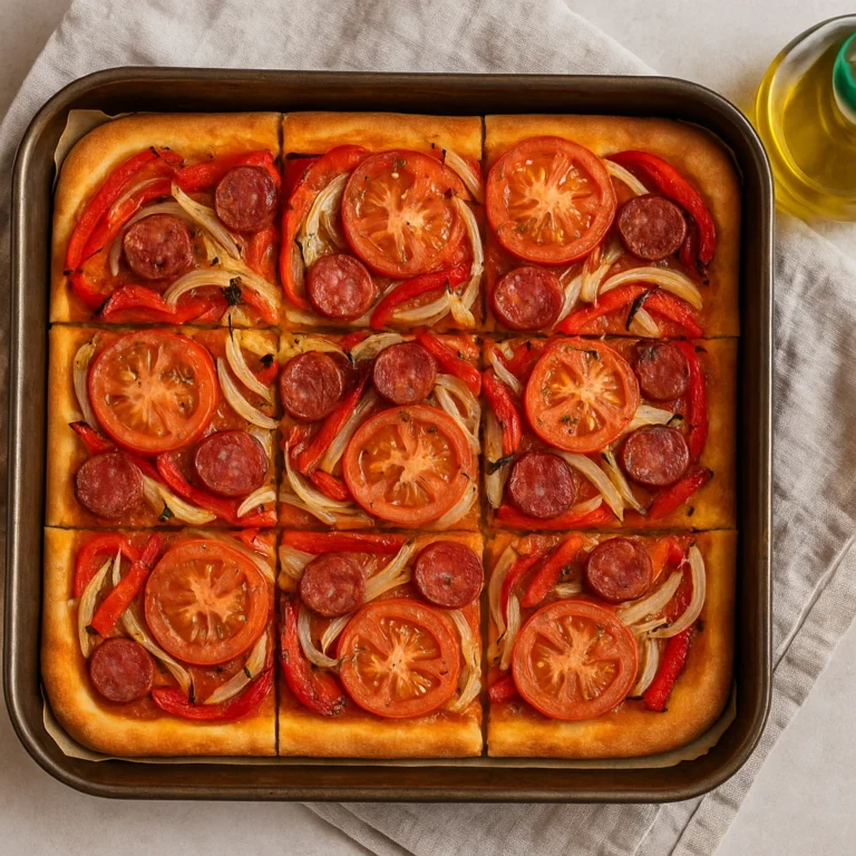 Base crujiente de pan, verduras de temporada y longaniza Noalejo doradita por encima. Ideal para vitrina fría, eventos o cenas informales. Se hace en bandeja 60×40 o en formato doméstico.